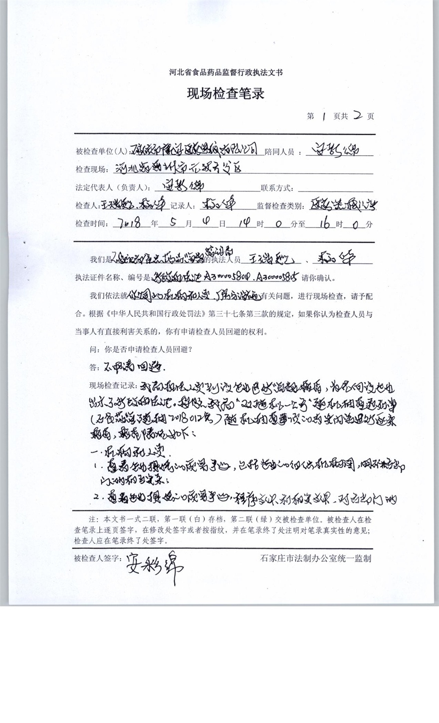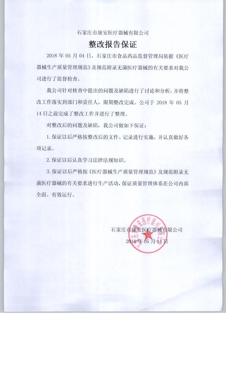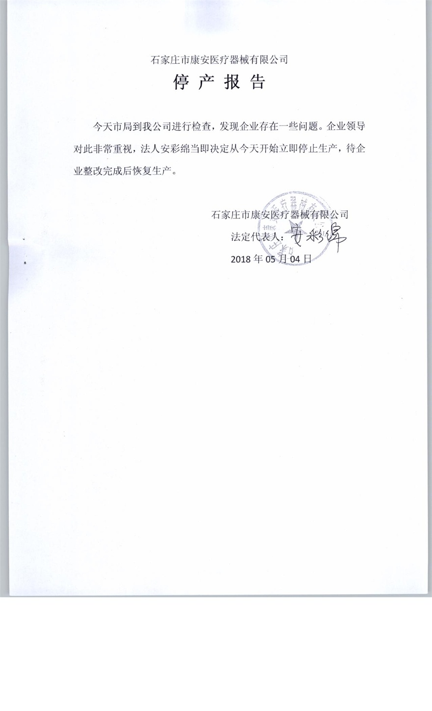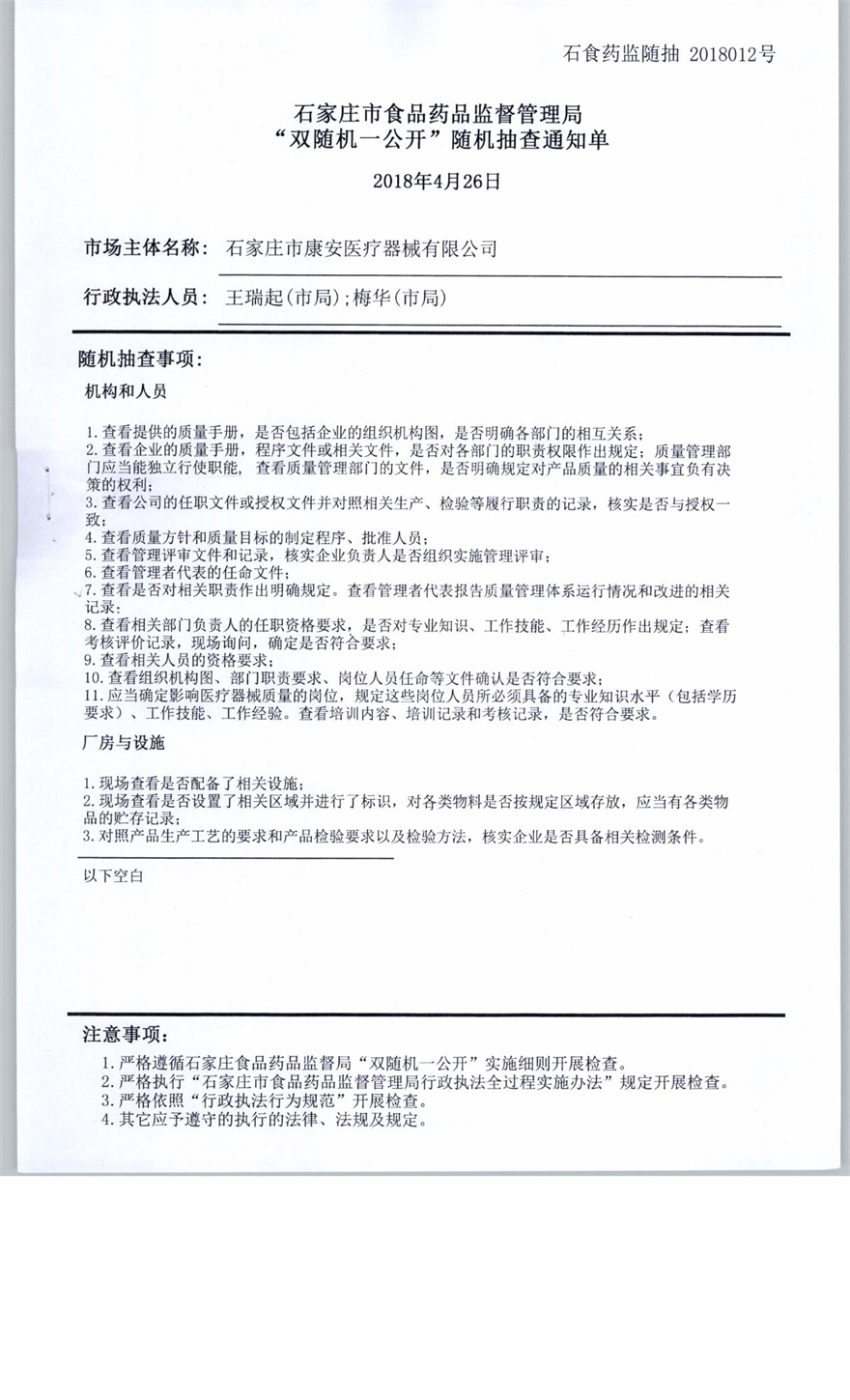 石家庄市康安医疗器械有限公司双随机抽查报告