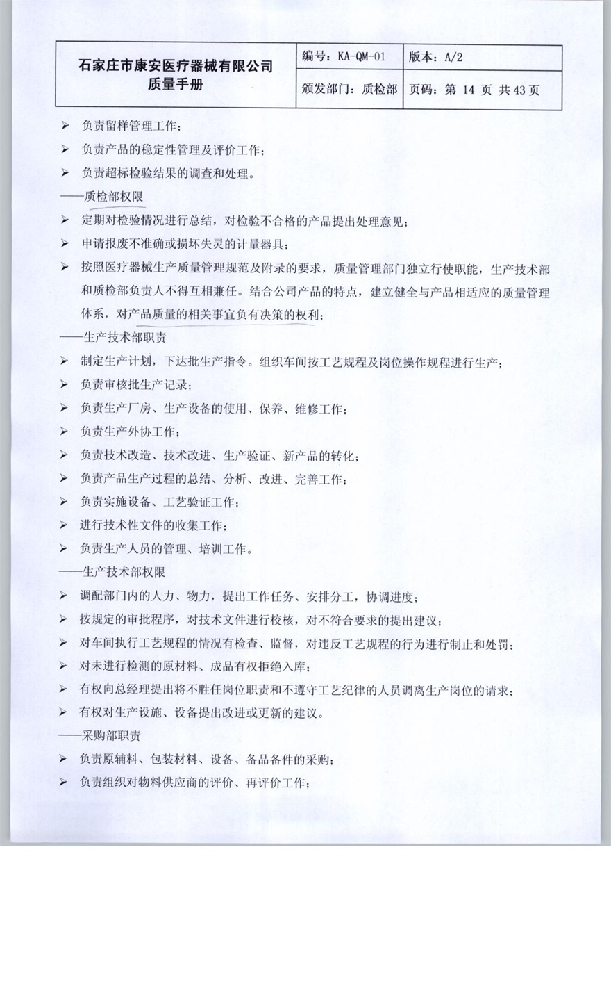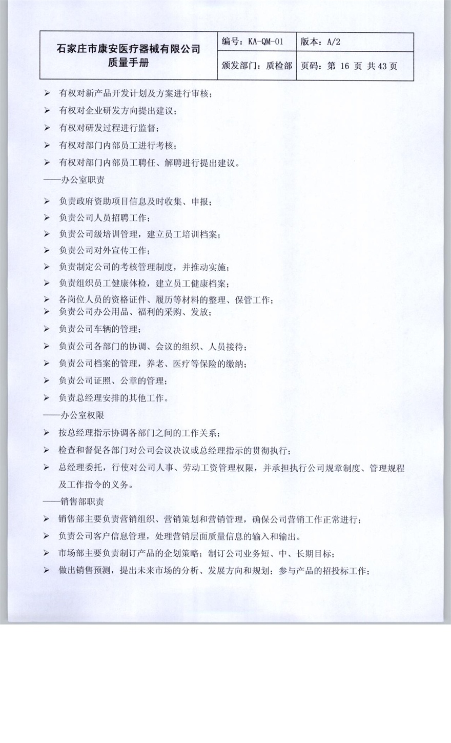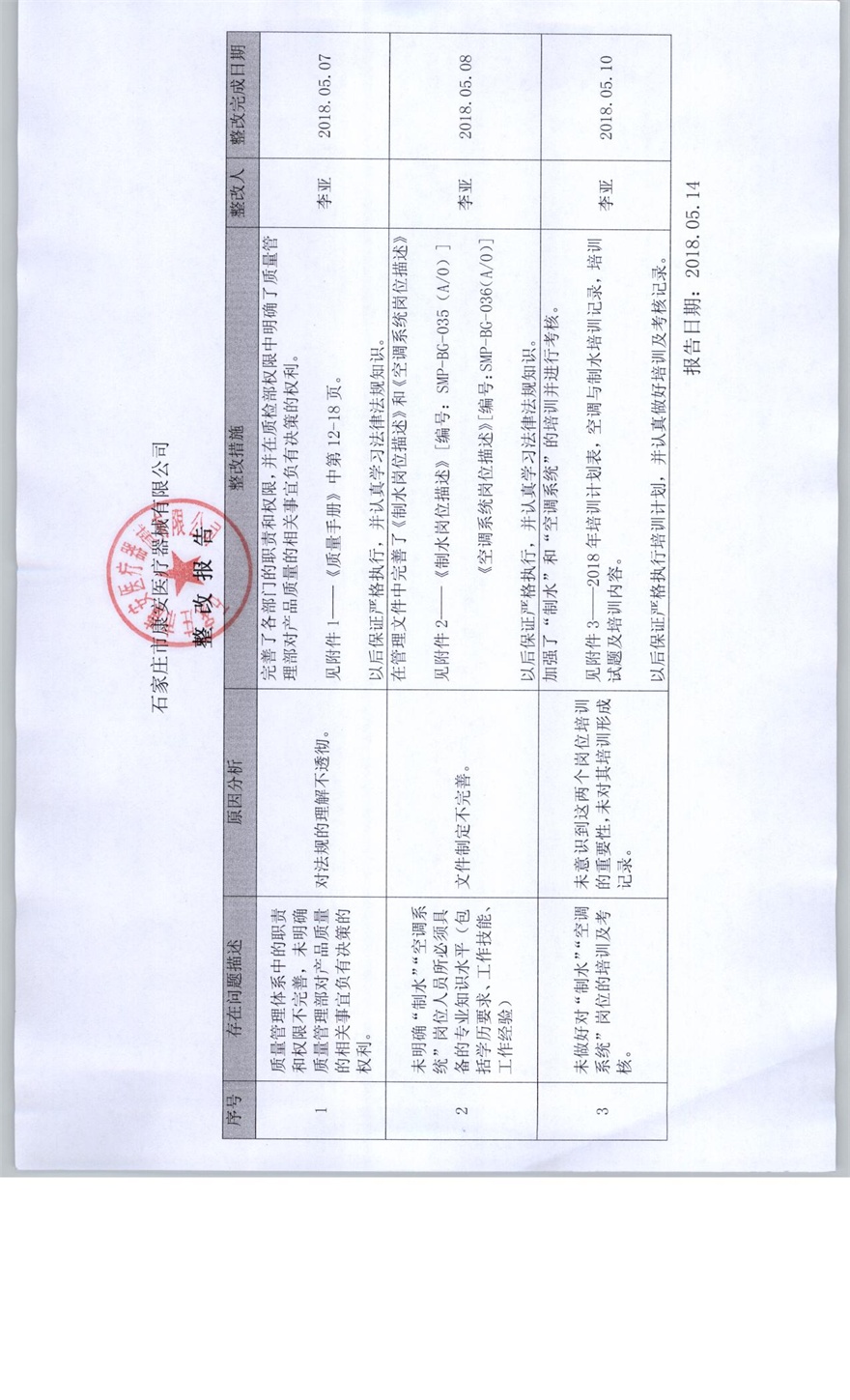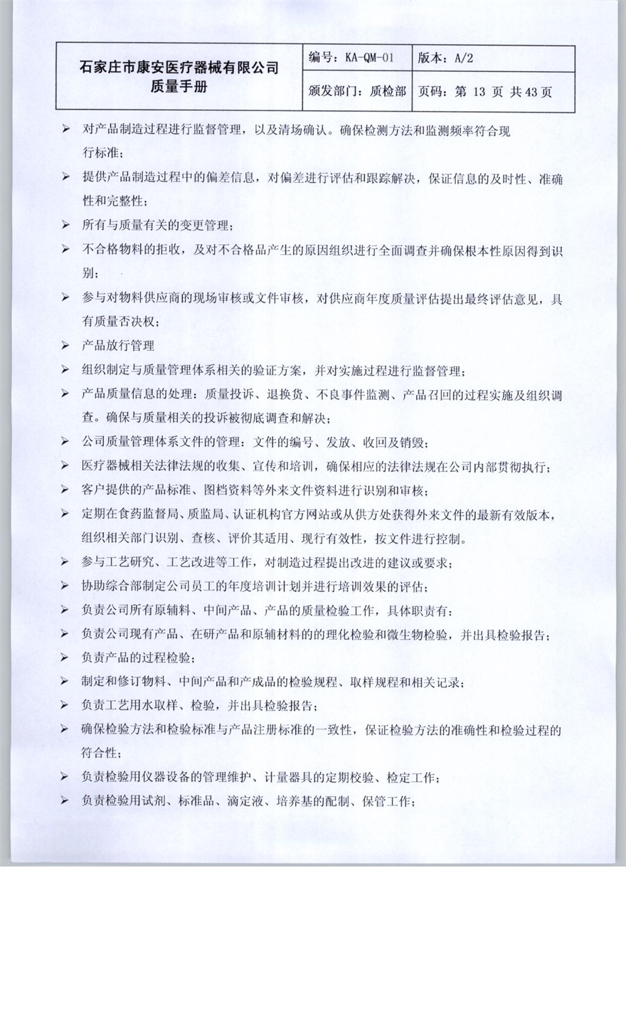 石家庄市康安医疗器械有限公司双随机抽查报告