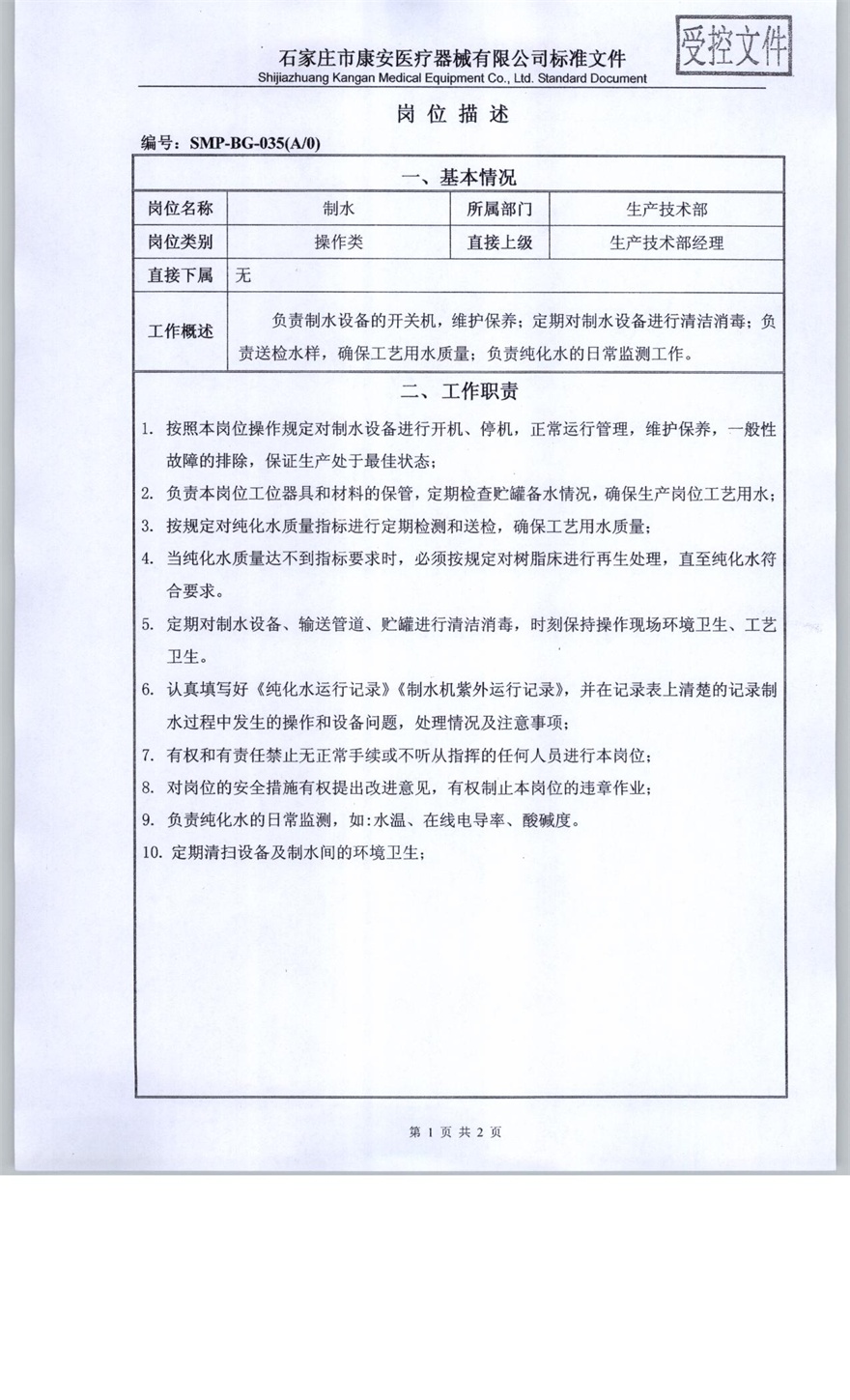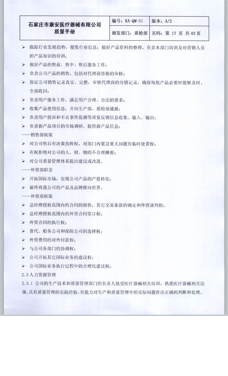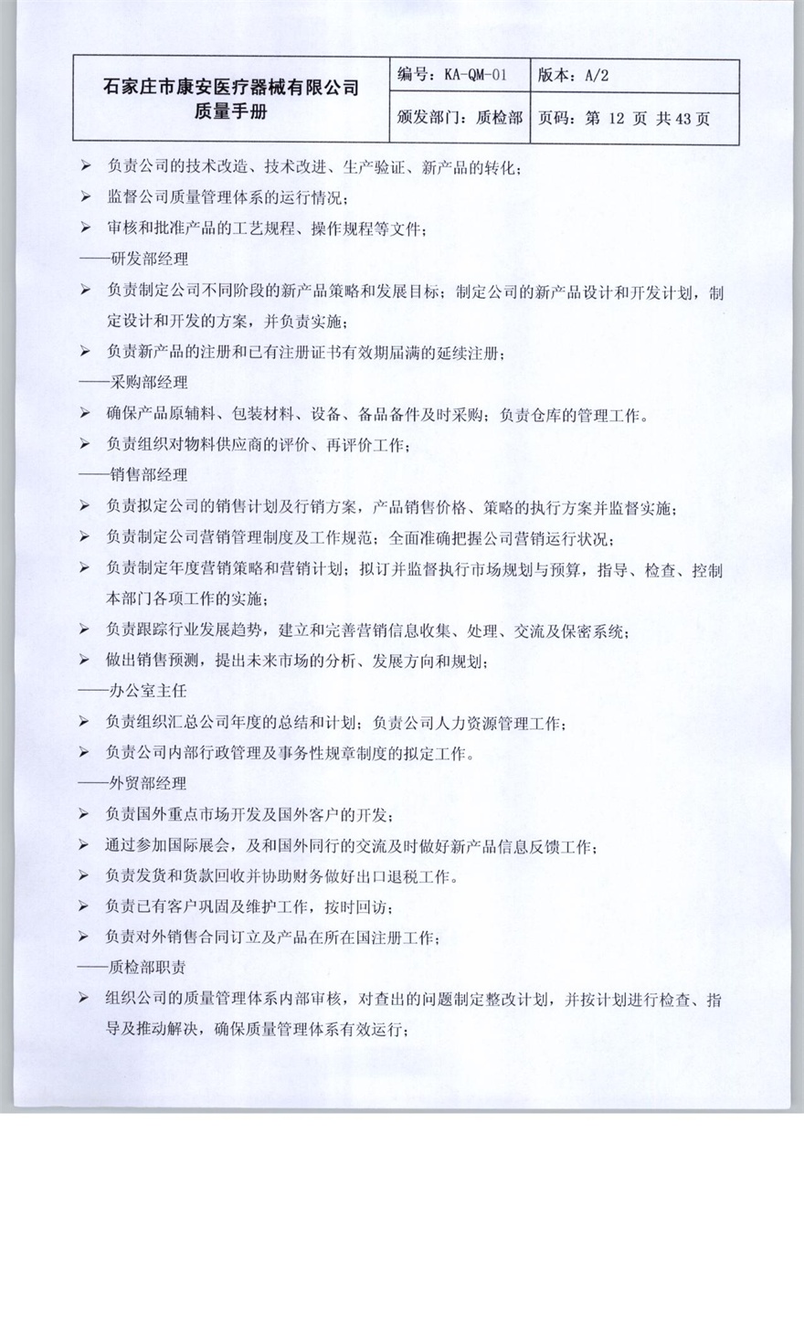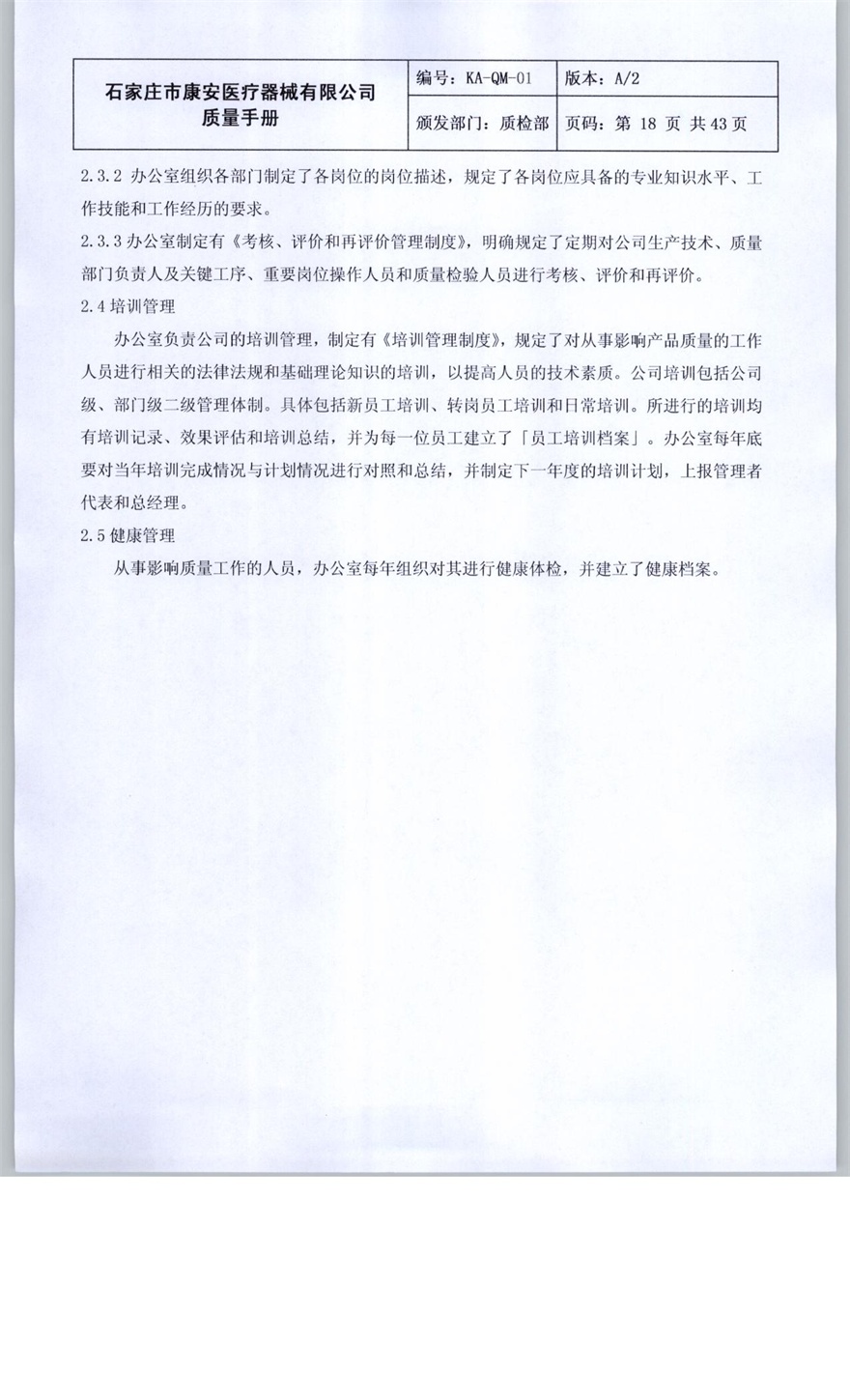 石家庄市康安医疗器械有限公司双随机抽查报告