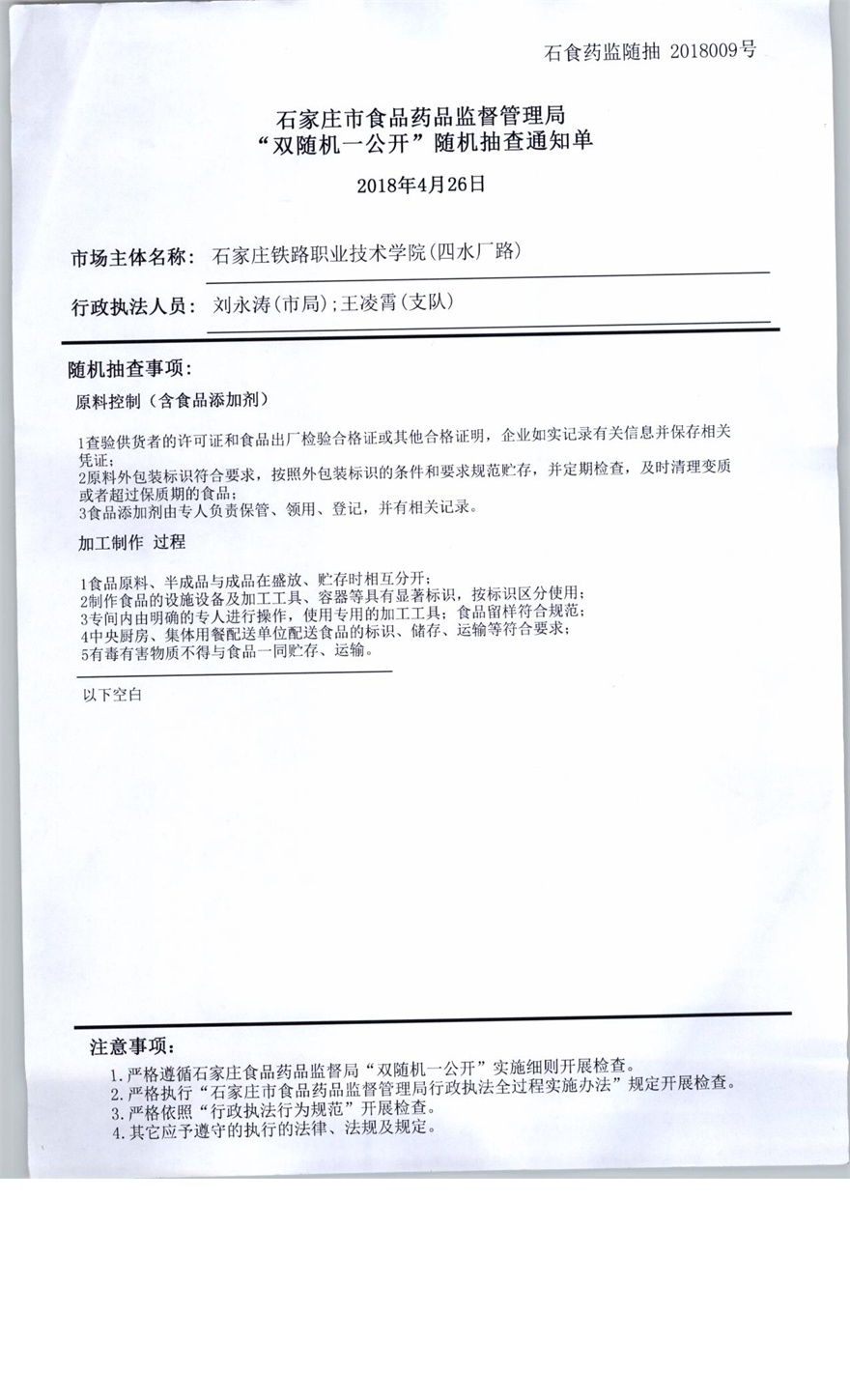 石家庄铁路职业技术学院(四水厂路)双随机抽查报告