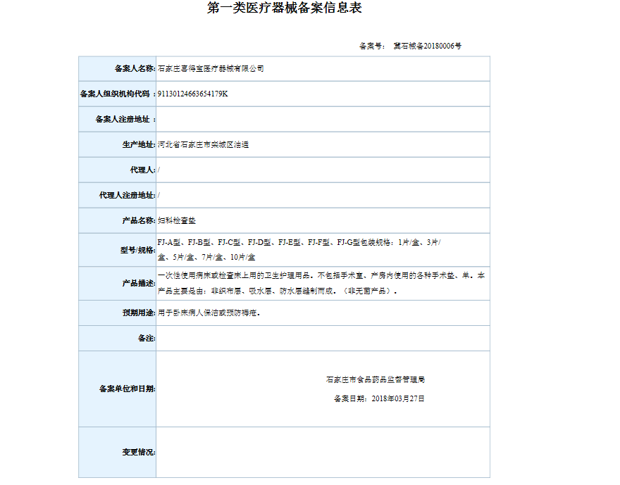 ![]() 附件2 2018年3月备案第一类医疗器械变更产品目录