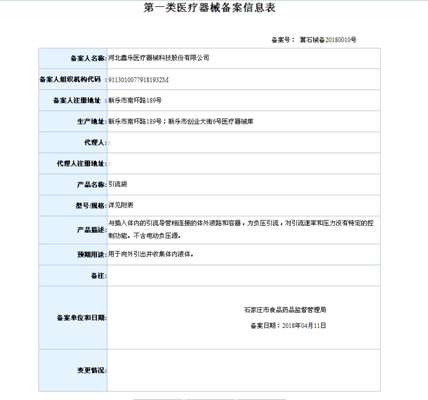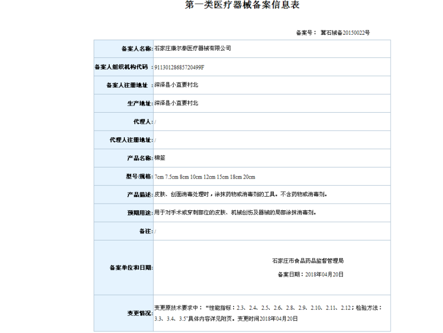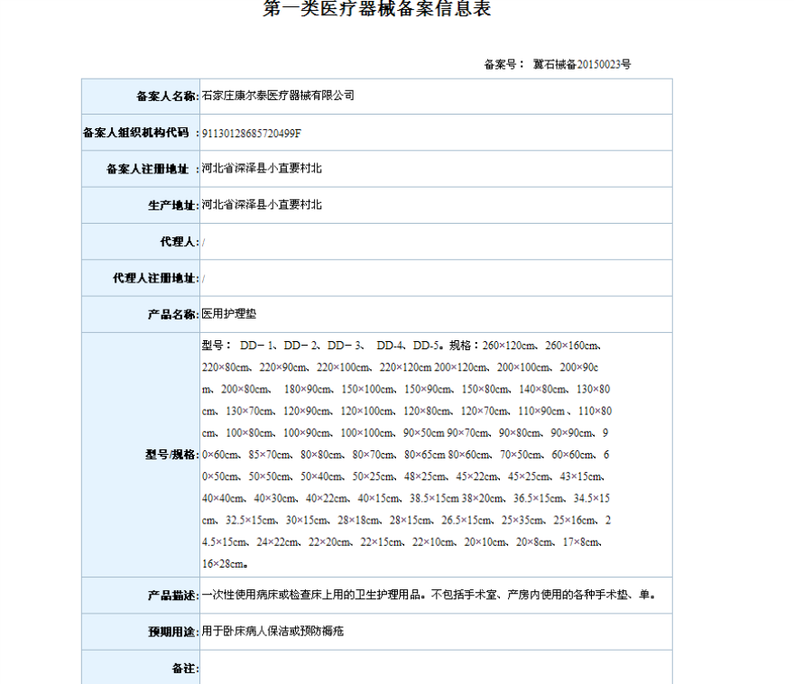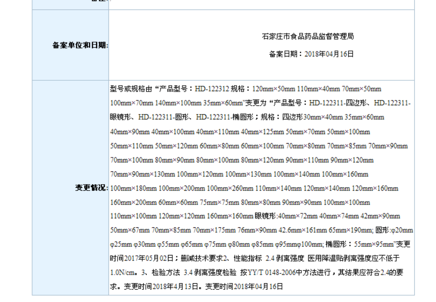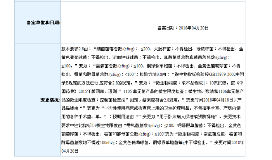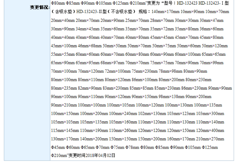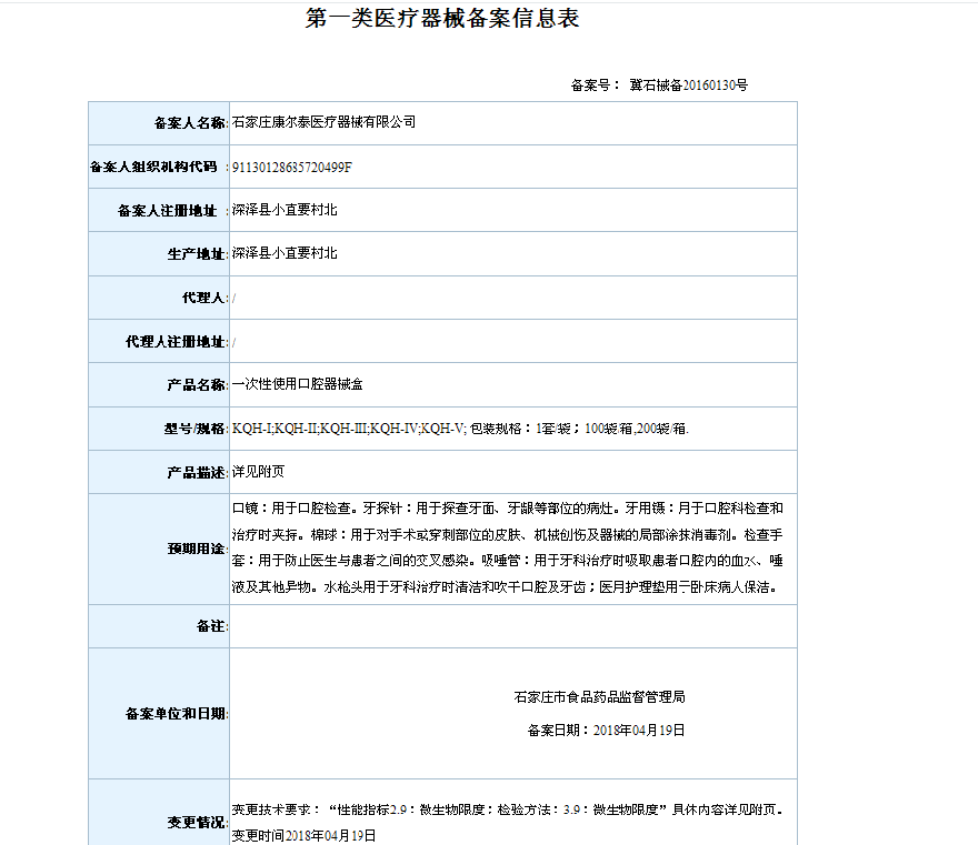 2018年4月备案第一类医疗器械变更产品目录