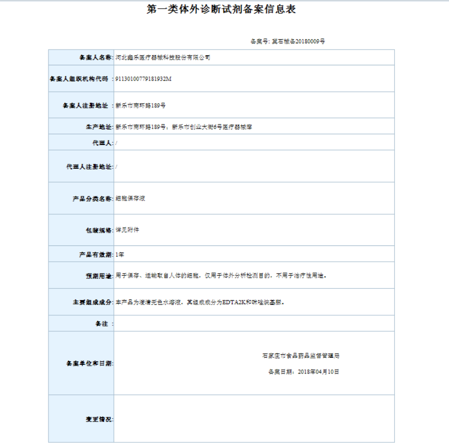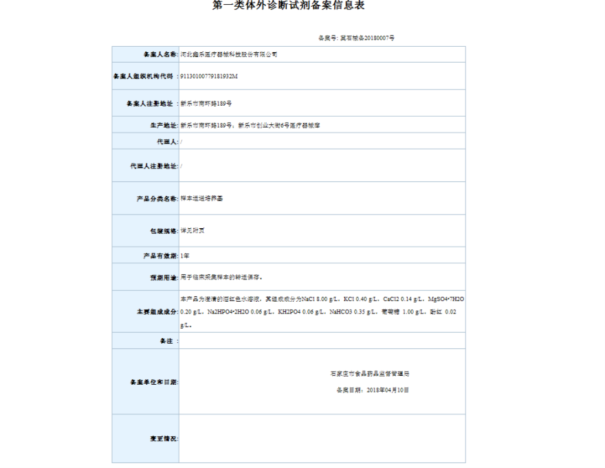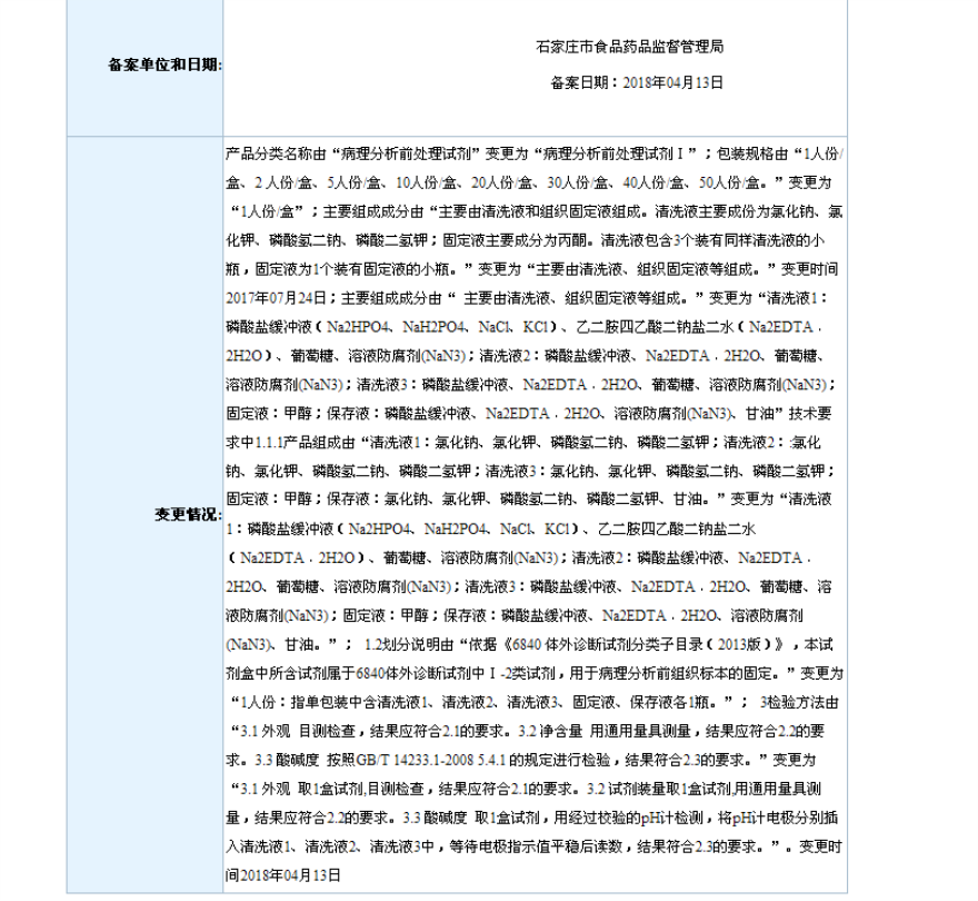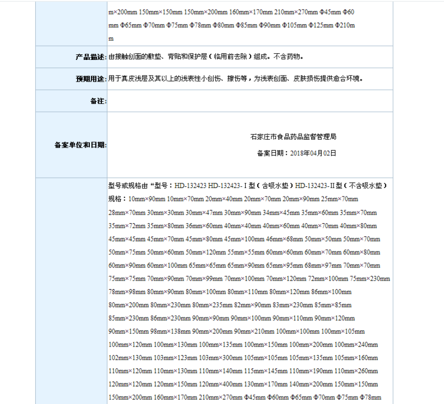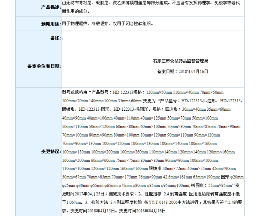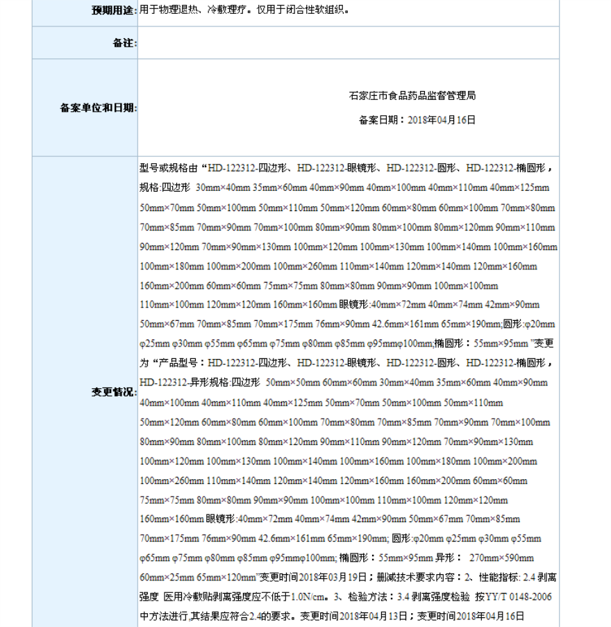 2018年4月备案第一类医疗器械变更产品目录