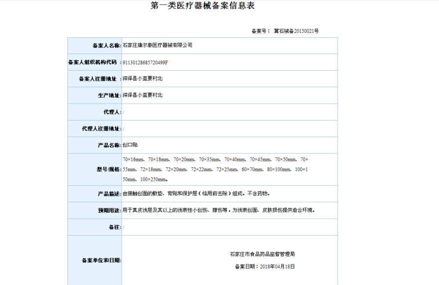 2018年4月备案第一类医疗器械产品目录