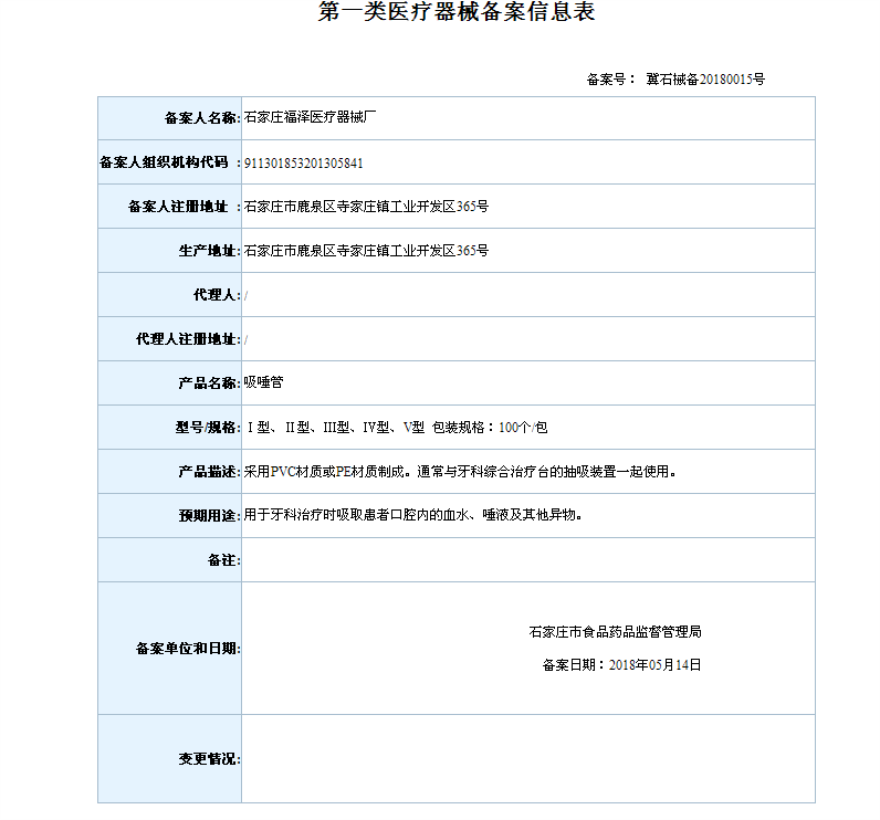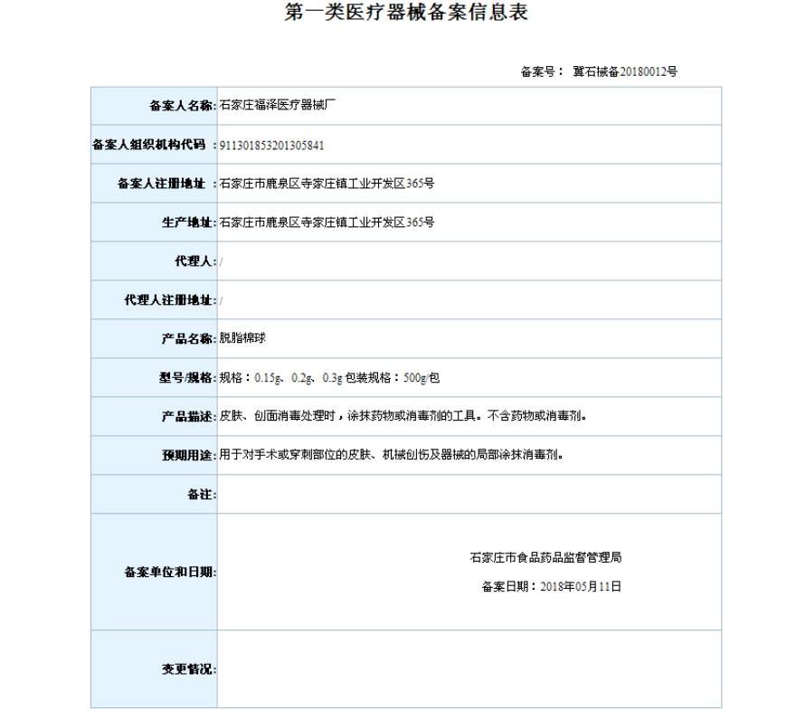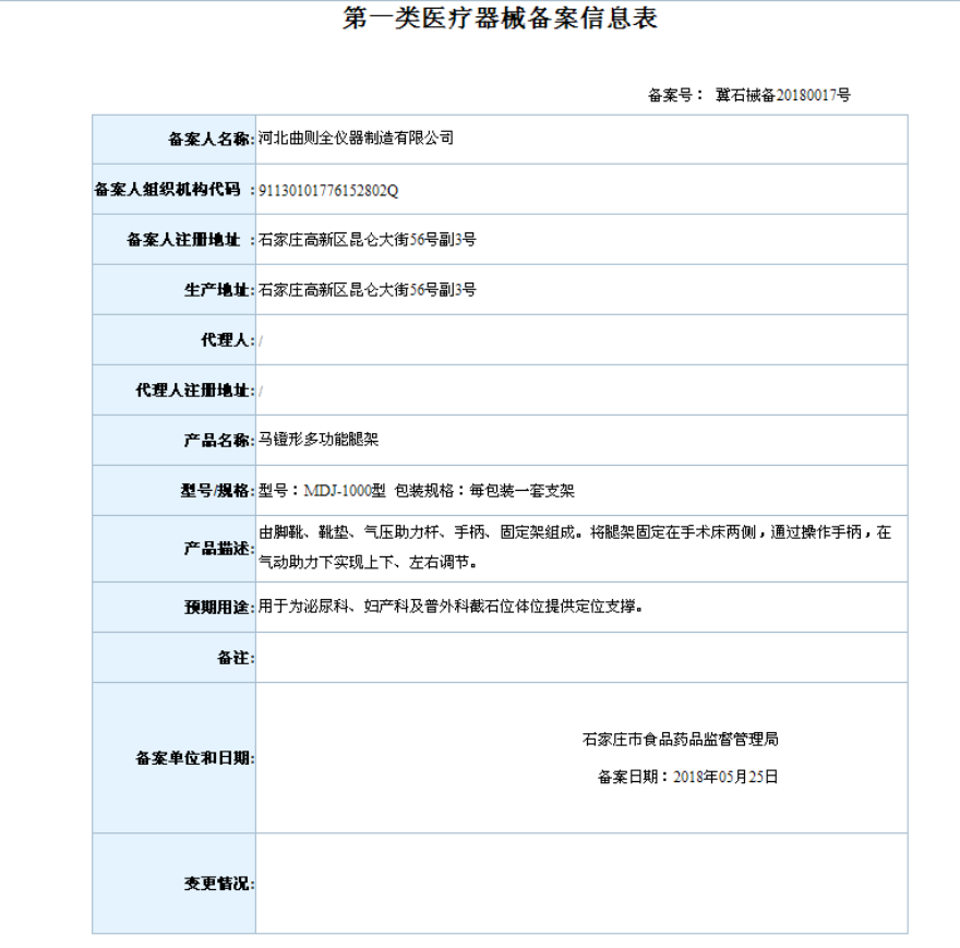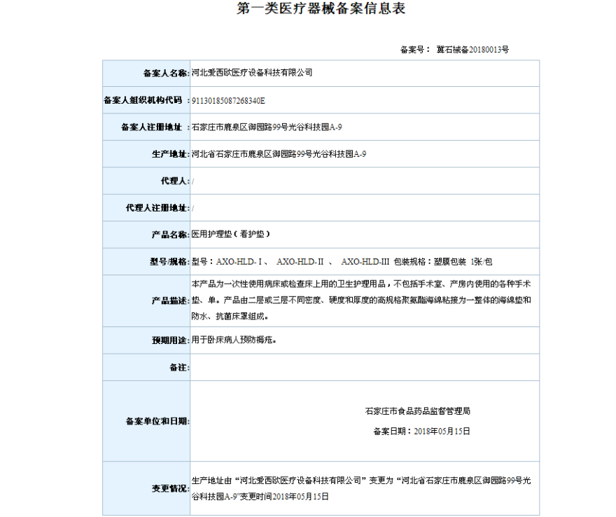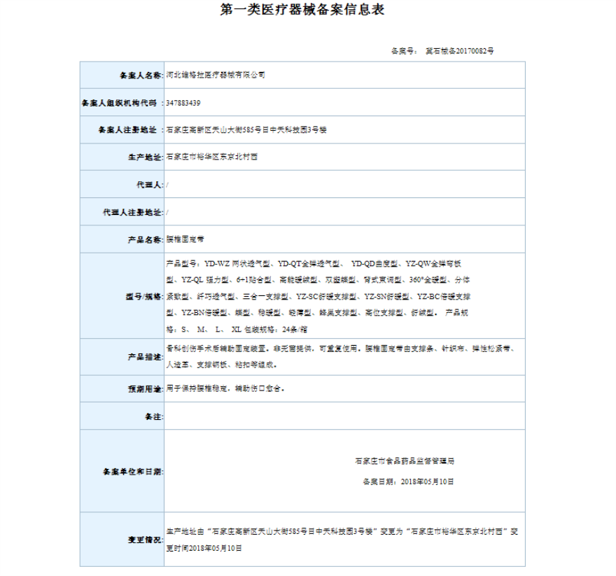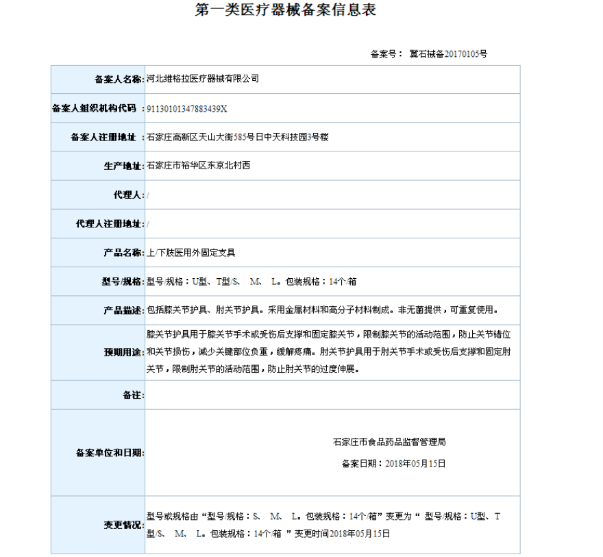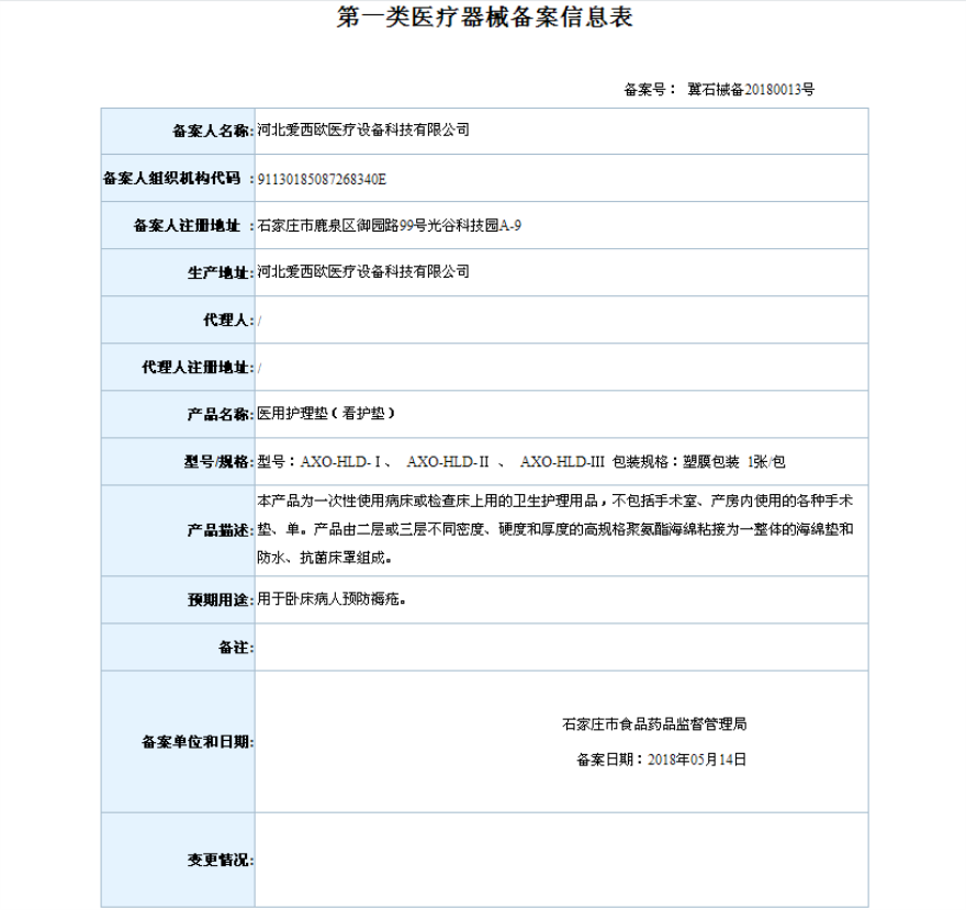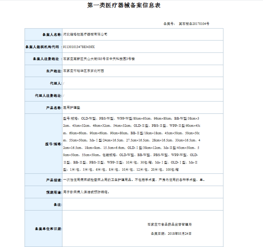 附件1:2018年5月备案第一类医疗器械产品目录及备案信息