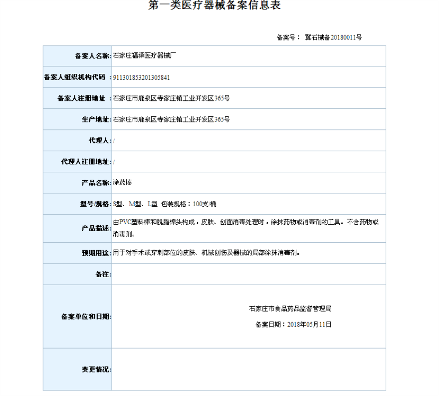 2018年4月,我局共备案医疗器械产品7个;变更备案医疗器械产品4个。(具体备案情况见附件)