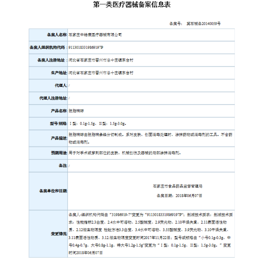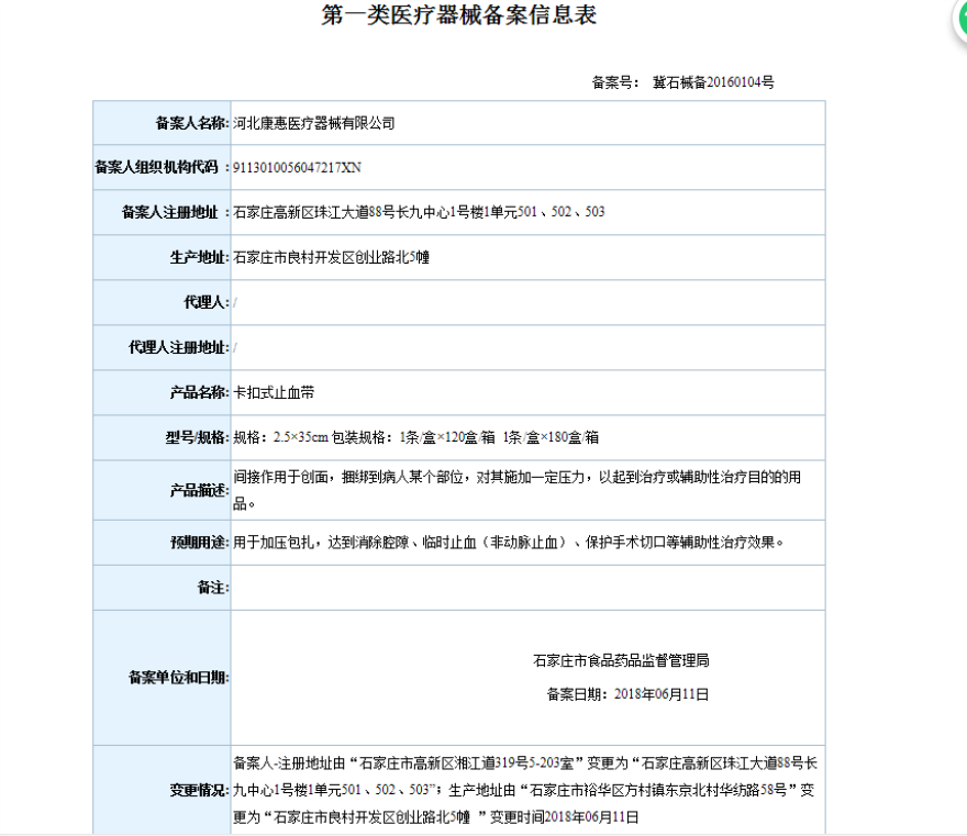 附件2:2018年6月备案第一类医疗器械变更产品目录及变更信息