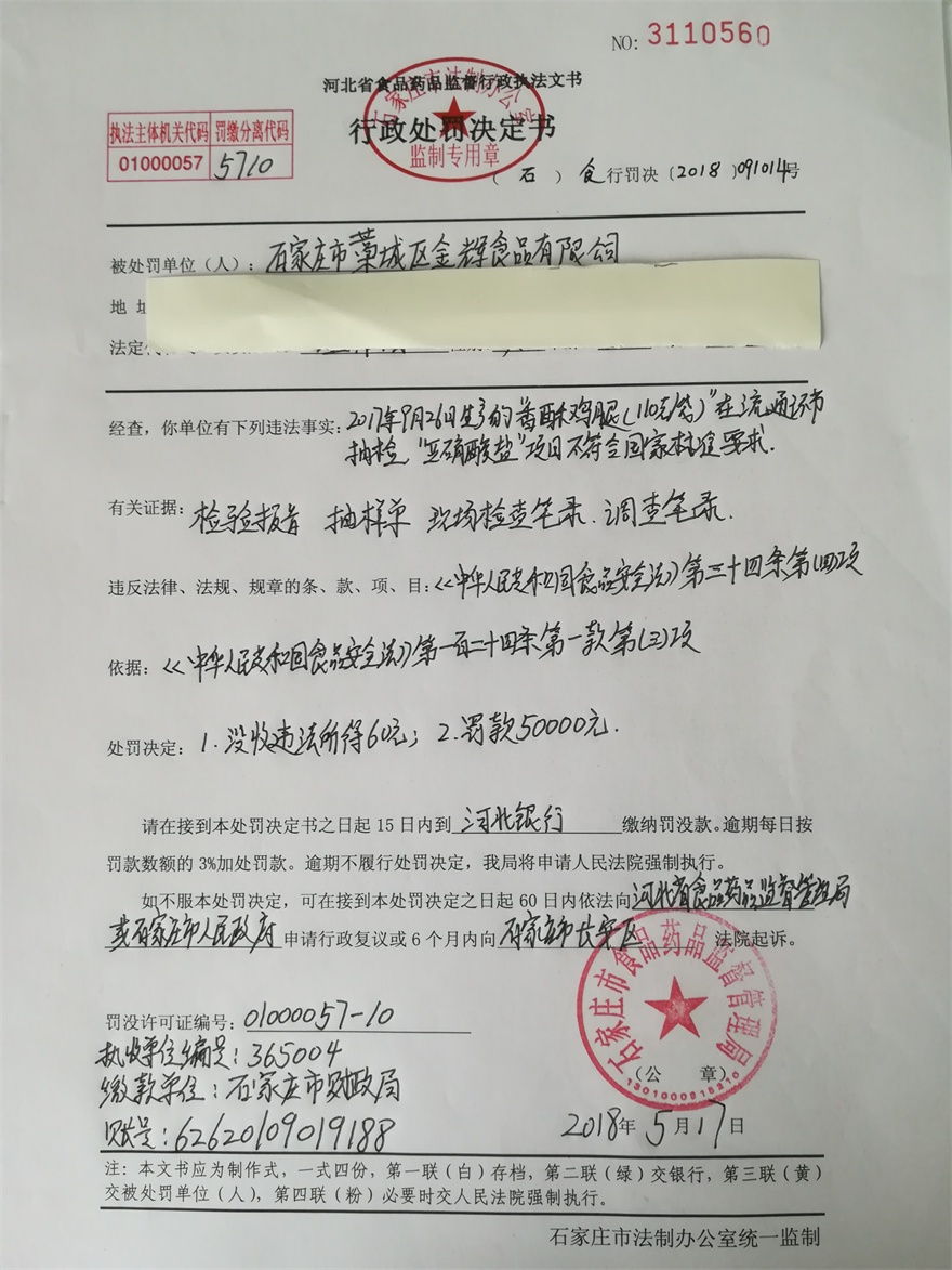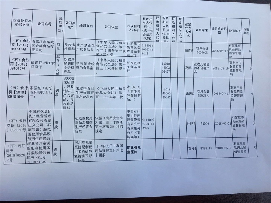 综合执法支队食品、药品、化妆品、保健食品、器械,行政处罚信息及处罚决定书(2018年第七批)
