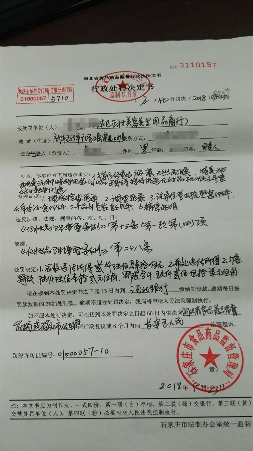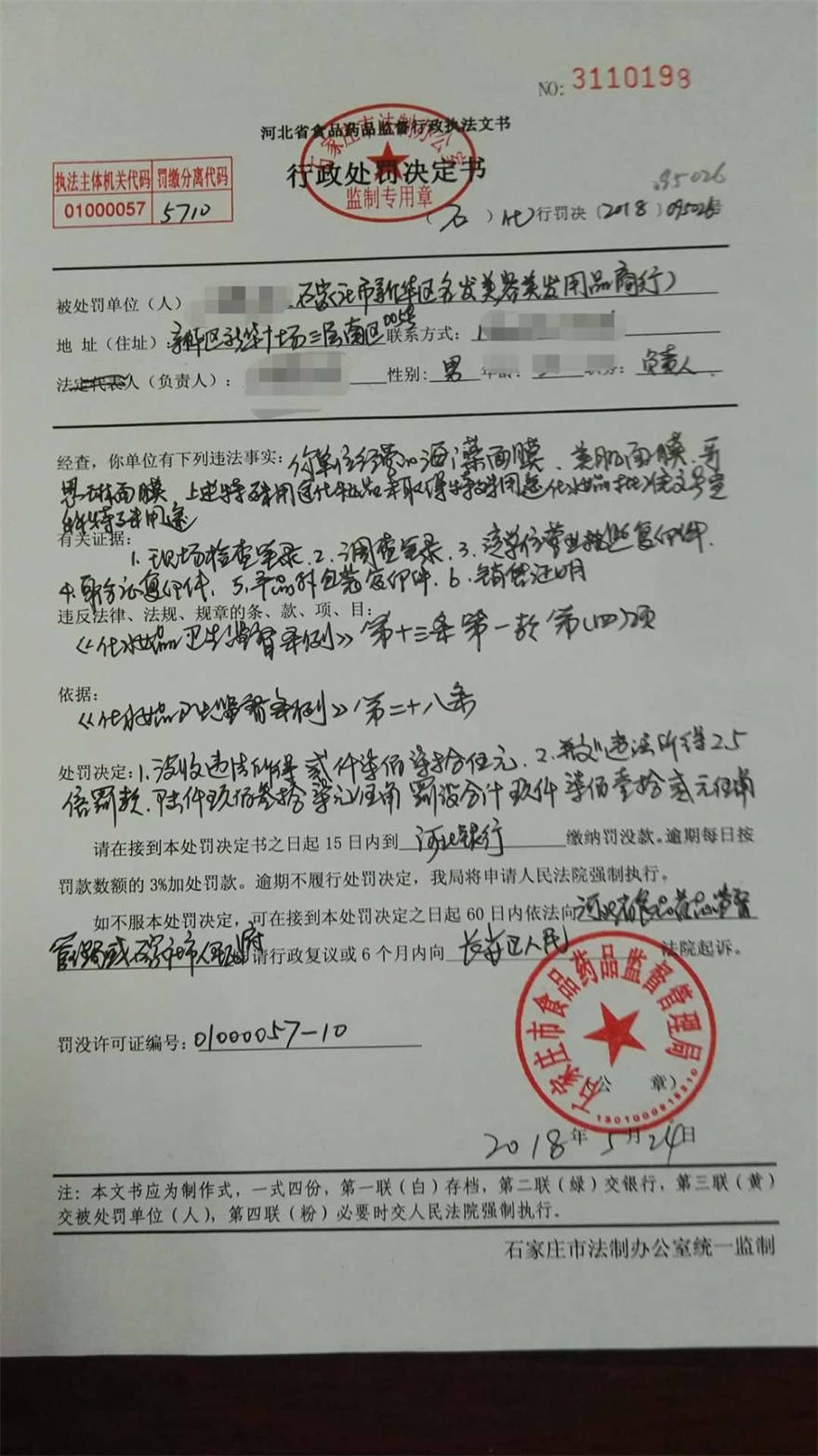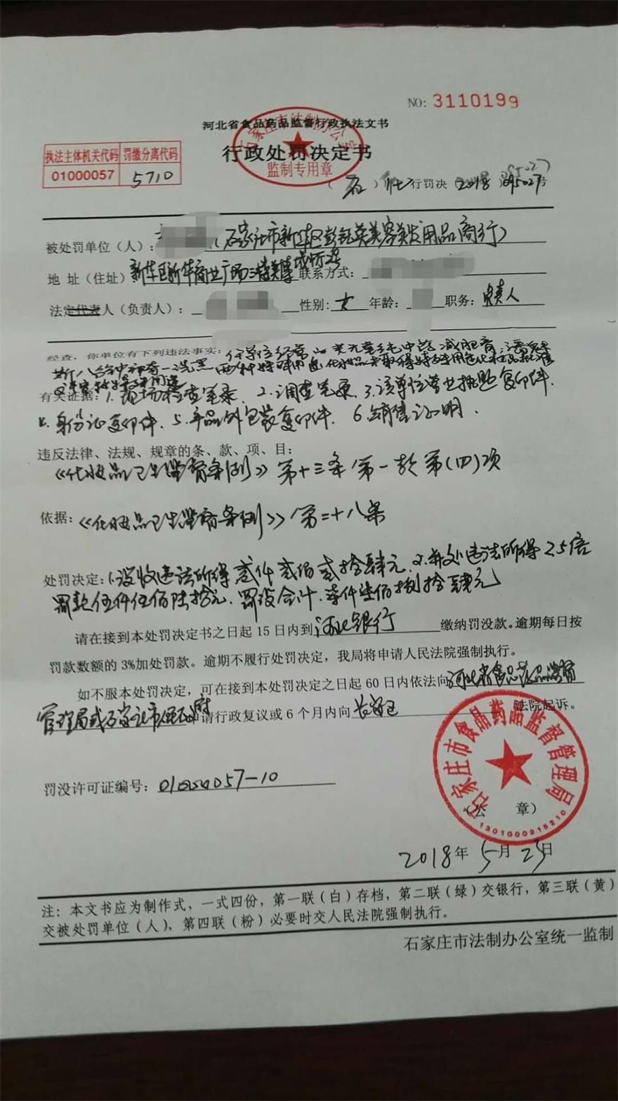 综合执法支队食品、药品、化妆品、保健食品、器械,行政处罚信息及处罚决定书(2018年第九批)发布时间:2018年05月31日