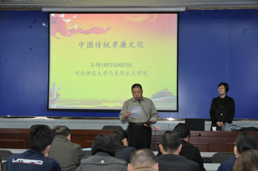 2017年11月9日下午,石家庄市局人事培训处在局二楼会议室举办了“中国传统孝廉文化”知识讲座,聘请河北师范大学齐绩副教授为全局及直属事业单位干部职工进行了精彩授课。讲座结合十九大报告新精神、新思想,从全新的角度认识中国传统文化。通过深入挖掘“孝”“廉”“贪”“贿”“赂”“欲”等字理文化,对中国的孝道、廉洁文化进行深度全面解读。 齐绩教授通过全新的解读视角,深厚的传统文化知识,开阔了与会人员的视野,在石家庄市食品药品监管系统掀起了弘扬爱国主义精神及中国传统文化的热潮。与会人员纷纷表示,在潜移默化中接受了孝廉文化教育和熏陶,得到了传统文化的洗礼,并表示不仅在工作中,在生活中,也要从自身做起,携同家庭各成员一起学习传统文化,将孝道、廉洁付诸行动,在管好小家庭的同时,将更多的热情投入到工作中,为食药监事业贡献自己的一份力量。 |