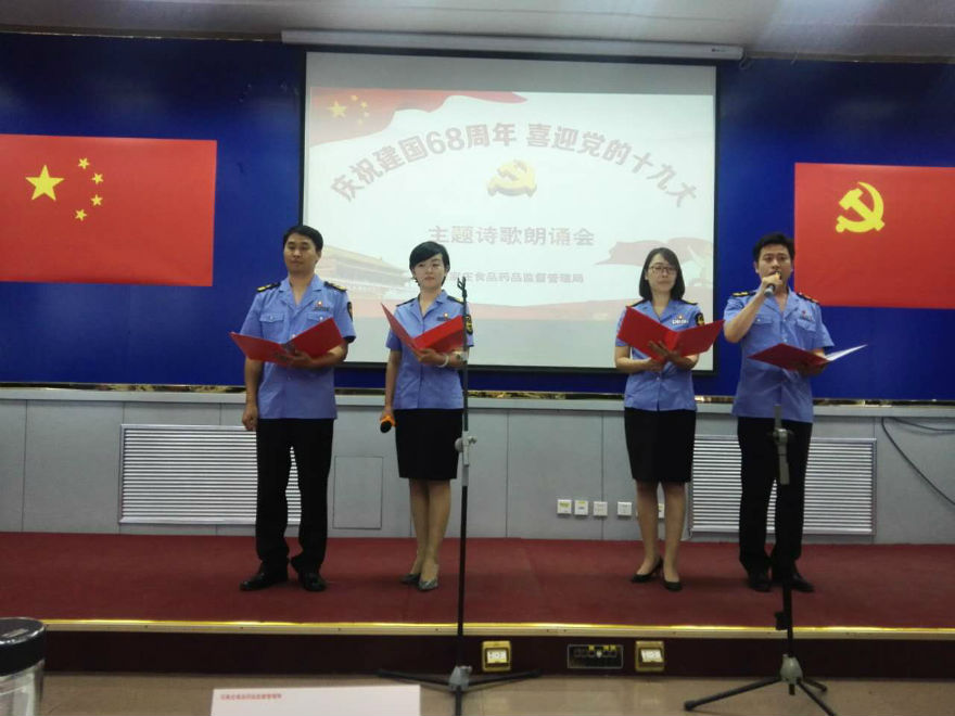 | 石家庄市食品药品监督管理局举办“庆祝建国68周年,喜迎党的十九大”主题诗歌朗诵比赛活动 发布时间:2017年09月30日